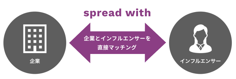 spread withは、エンゲージメントが高いインフルエンサー に格安でプロモーションが依頼できるサービスです。 事業者様とインフルエンサーを直接つなぎ、 本当に効果の出るインフルエンサーマーケティングを実現します。